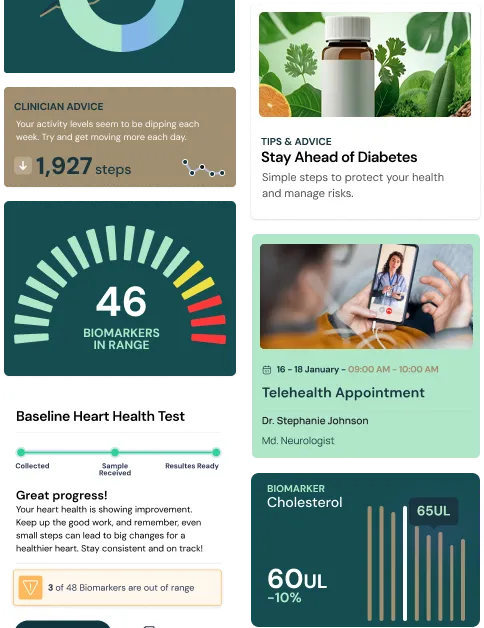 Our platform’s biomarker capabilities go beyond the basics to help patients more clearly understand and track their journey to a better self. With over 200 analytes to choose from, you can build the panels and brand white-label kits best suited to your business objectives and end users’ needs.