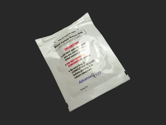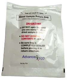 Without removing the absorbent material, place the dried blood sample collection card into the blood sample return bag. Tightly seal the bag closed.