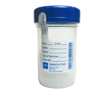 Volumes over .5 oz (15 ml) may result in dilution, which reduces the sensitivity of the test. You do not need to write your information on the collection cup.