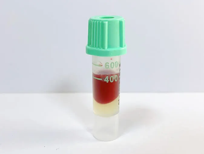 Without removing the absorbent material, place the closed transport tube containing your urine sample into the biohazard bag. Tightly seal the bag closed. Set this aside while you collect your blood sample.