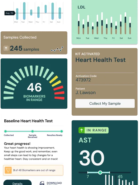 Our platform’s biomarker capabilities go beyond the basics to help patients more clearly understand and track their journey to a better self. With over 200 analytes to choose from, you can build the panels and brand white-label kits best suited to your business objectives and end users’ needs.