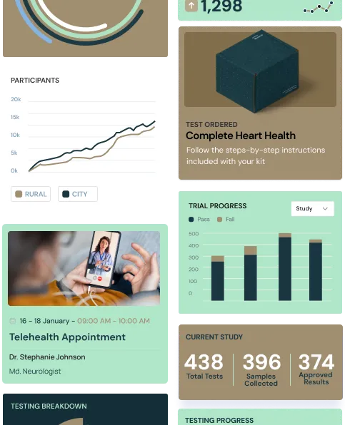 Our platform’s biomarker capabilities go beyond the basics to help patients more clearly understand and track their journey to a better self. With over 200 analytes to choose from, you can build the panels and brand white-label kits best suited to your business objectives and end users’ needs.